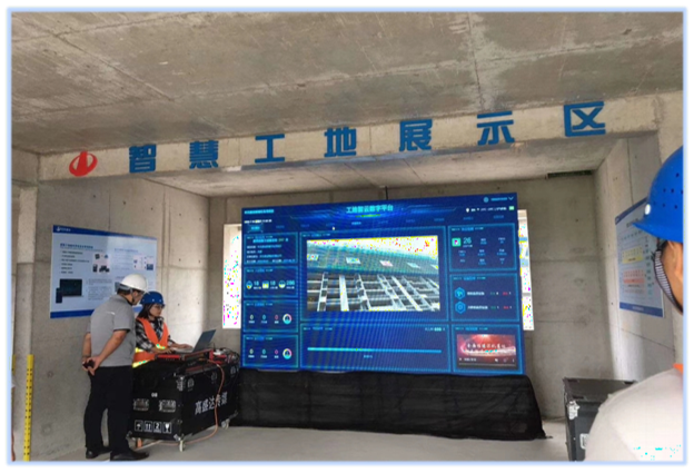 “工地智云智慧工地管理系统”的部署应用、塔机吊钩可视化、智慧 安全用电监管、扬尘智能在线监测、VR施工安全教育平台、BIM展 示等。